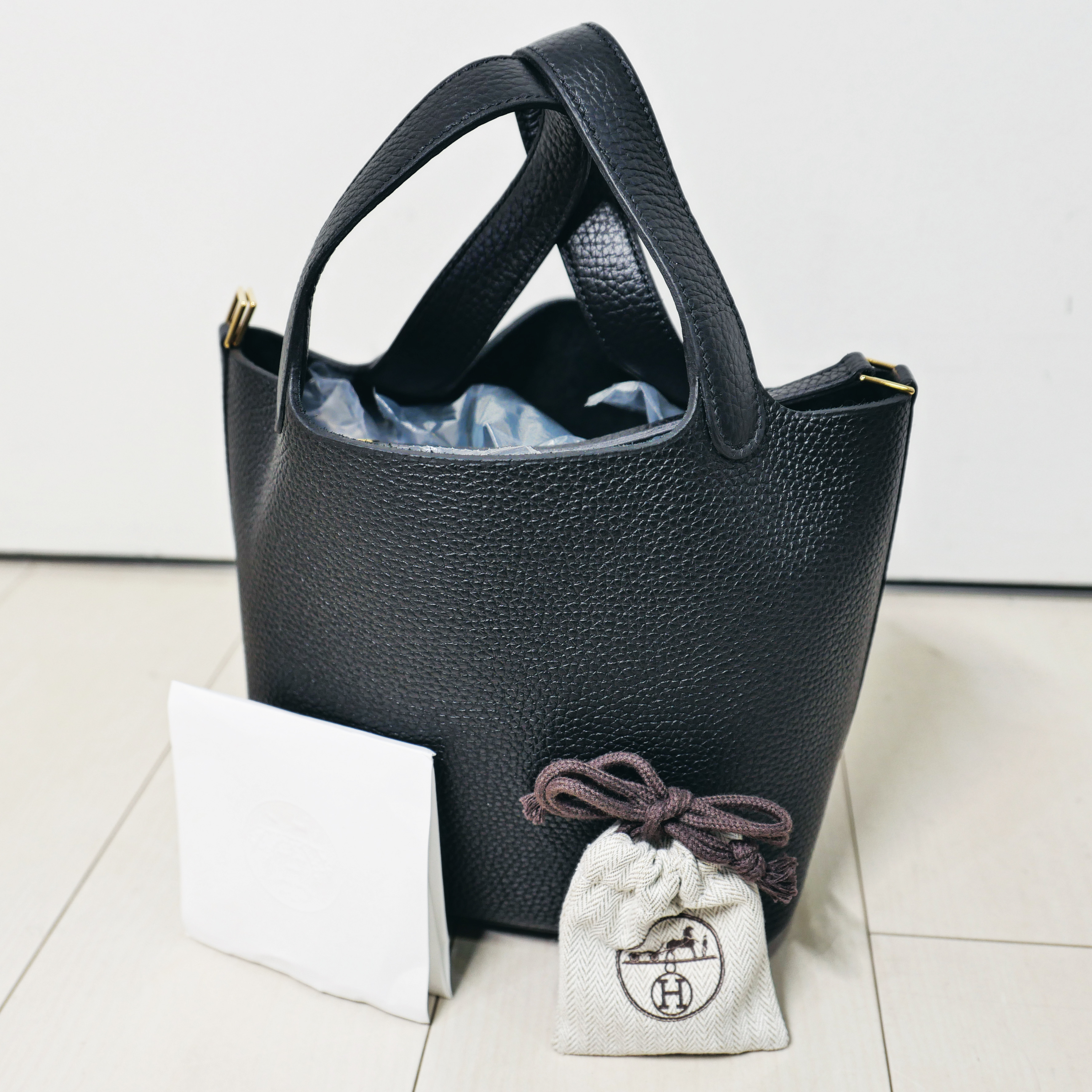 エルメスのピコタンロックPMを買取りさせていただきました。バッグ底の鋲、カデナには保護フィルムがついたまま。未使用品ですよ✨