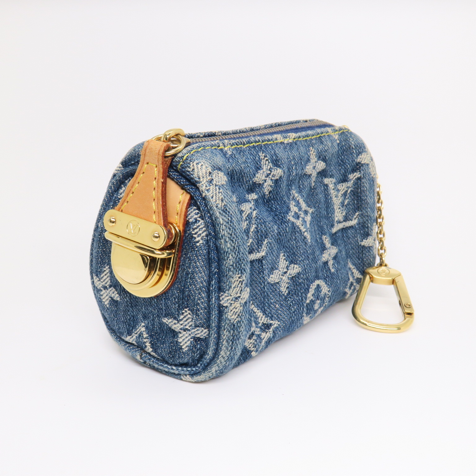 キーホルダー付きのデニム製ポーチ。バッグチャームとしても使えます。レア商品です。