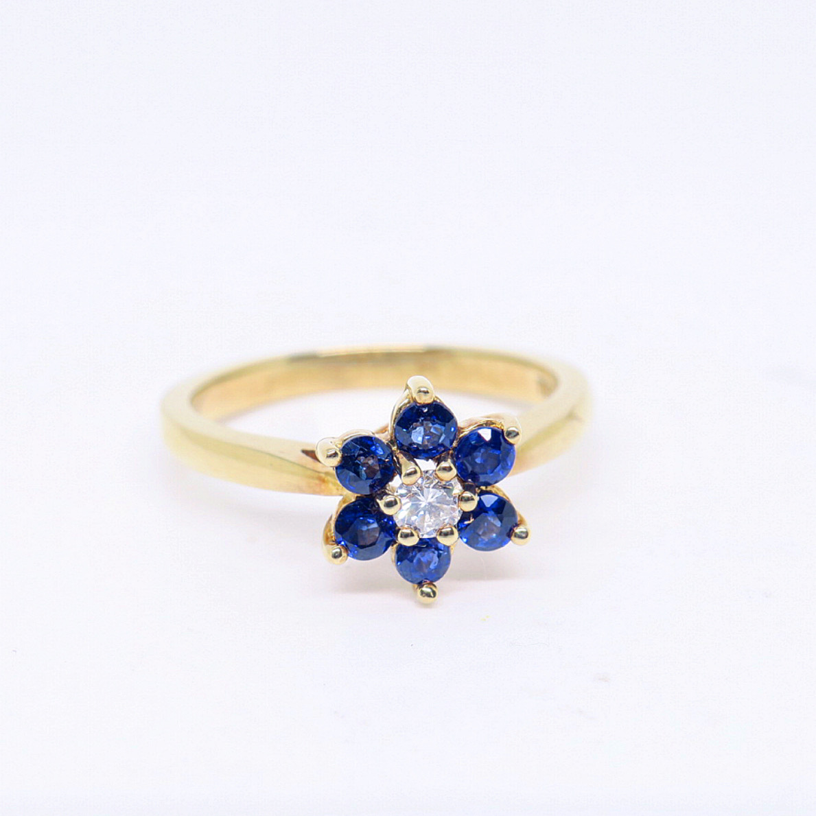 綺麗なブルーサファイア、ダイヤモンドがセットされています。750YG製。純正ケースが付属。
