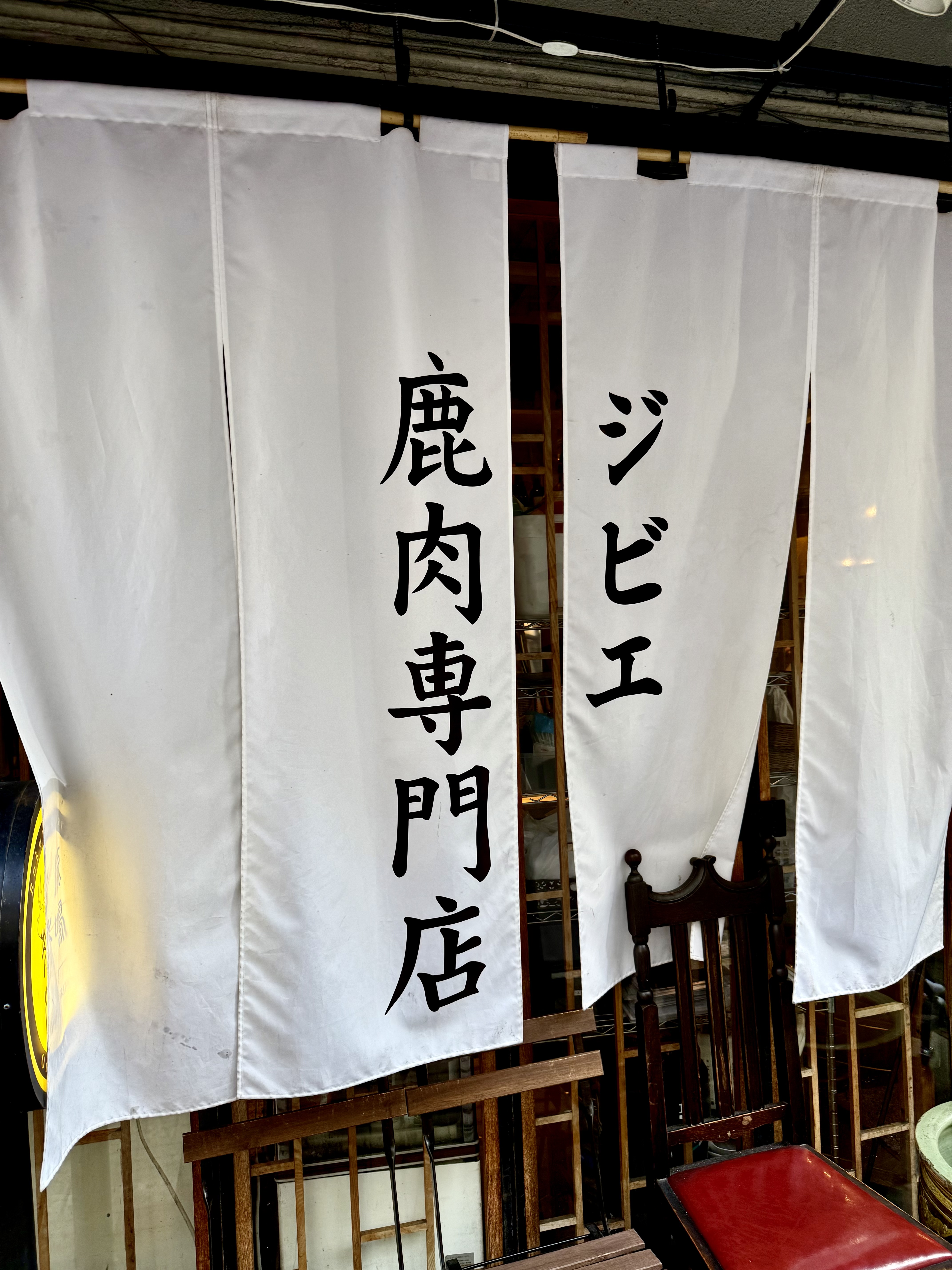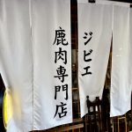 暖簾がインパクトあります。鹿肉専門店