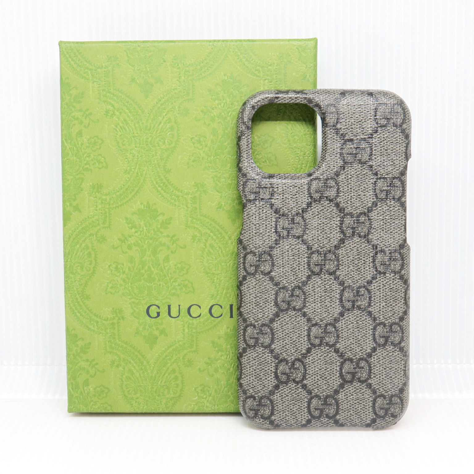 グッチのiPhone15用ケースを買取りさせていただきました。GGスプリームキャンバスがしっかりiPhoneを守ります。