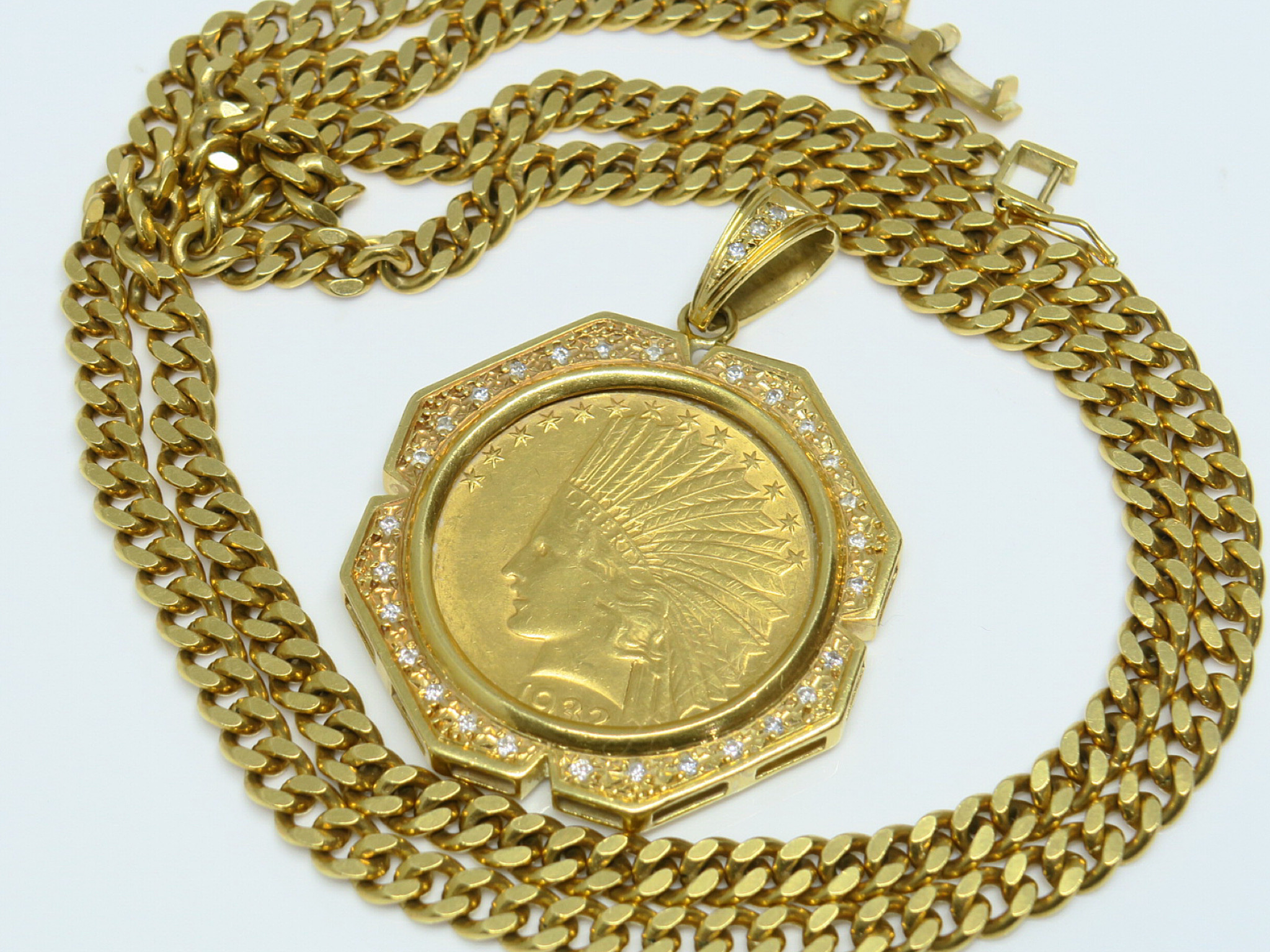 本日は金貨ペンダント付きのネックレスを買取りさせていただきました。
