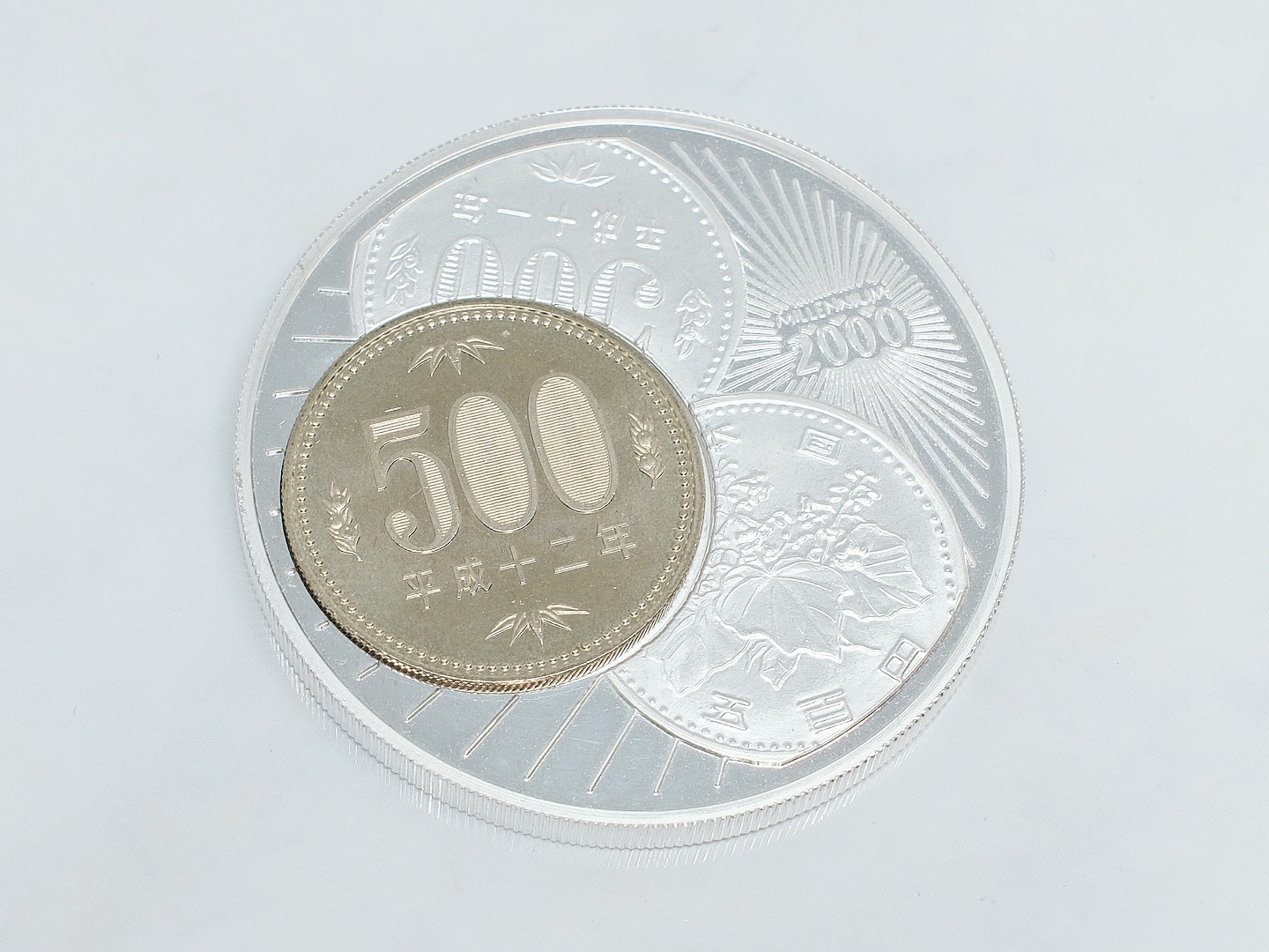 本物の平成12年 500円硬貨がセットされています。